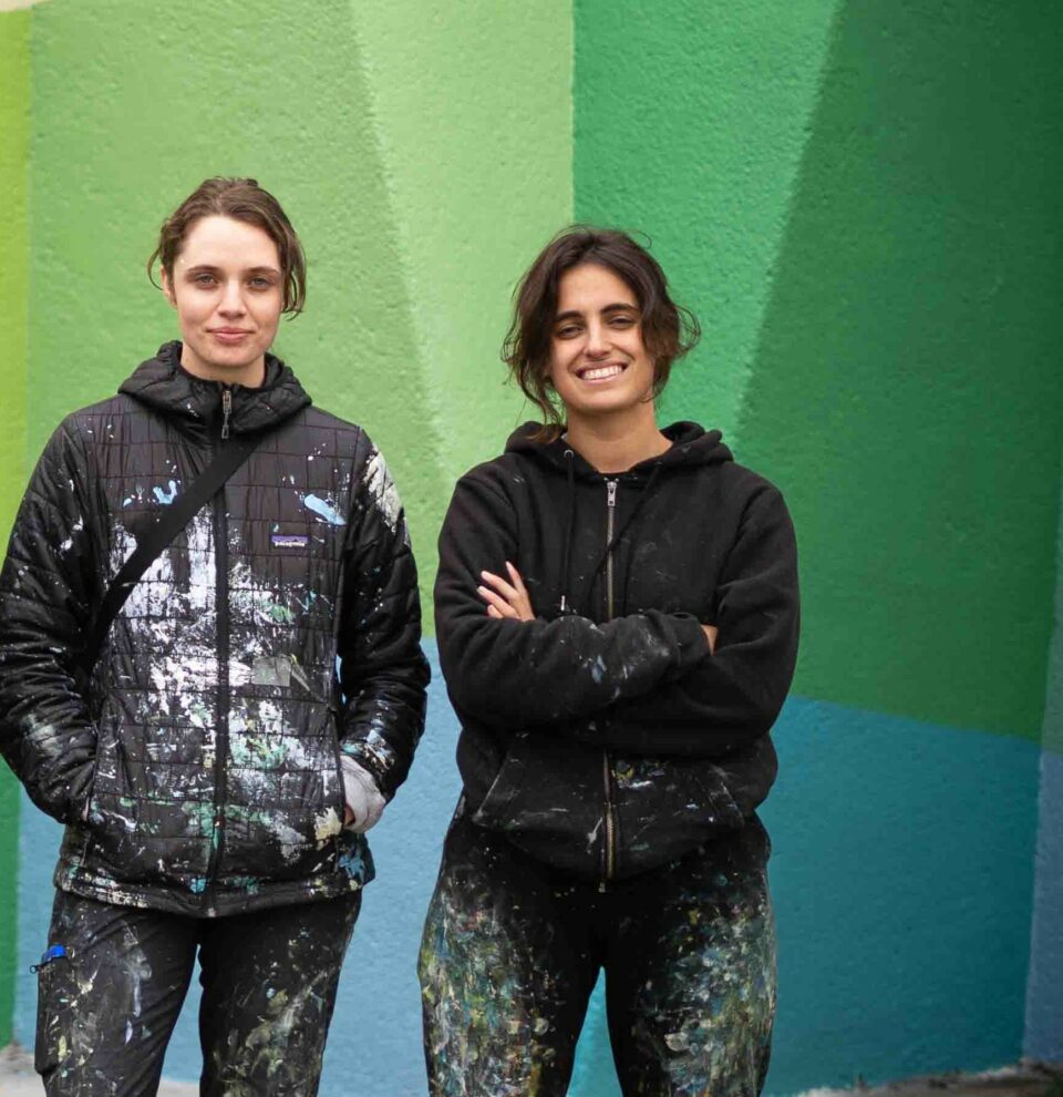 Maria (España) y Tiffany (Chile) se unen como colectivo para visibilizar a sus comunidades mediante el arte. María lo hace desde el muralismo y Tiffany desde su interacción con organizaciones comunitarias, fusionándose en proyectos de espacio público.