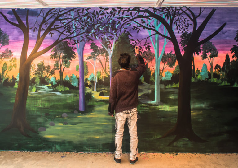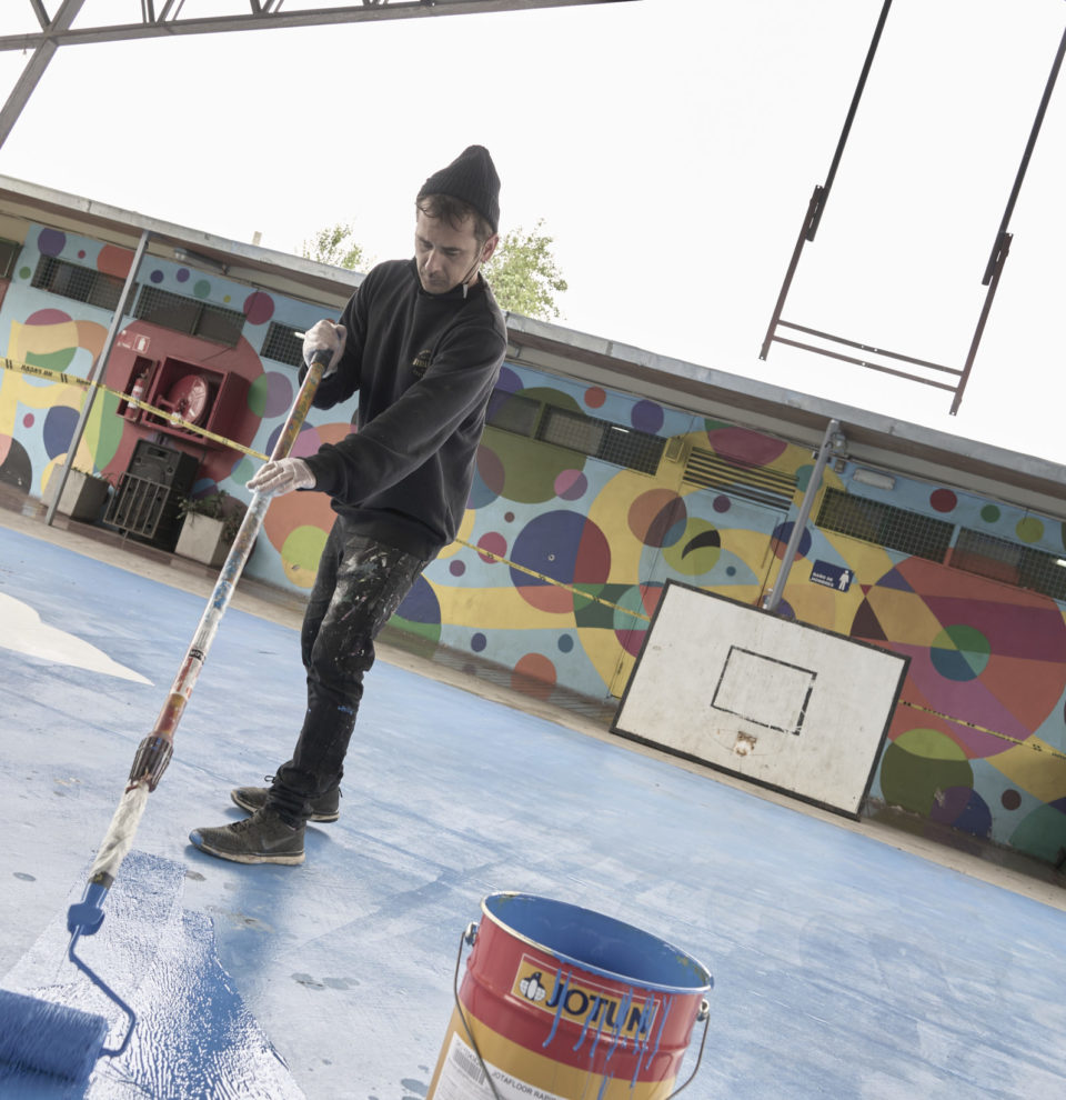 El Muralismo ha permitido que Matías se exprese libremente por el soporte urbano. La perspectiva de sus escenas se ven aún más distorsionadas por la arquitectura de los espacios que ha intervenido.