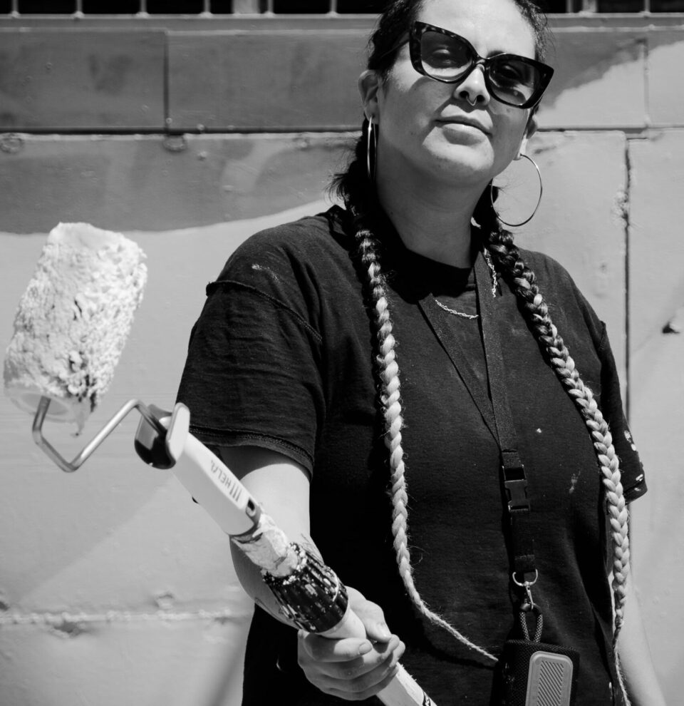 Pintora urbana. Su trabajo se enfoca en la visibilización de la fuerza de la mujer obrera. A través de personajes y frases, usa el arte como una liberación de emociones y vivencias de crecimiento y lucha personal, buscando que otros puedan identificarse con estos procesos y aprendizajes que va descubriendo en sí misma.