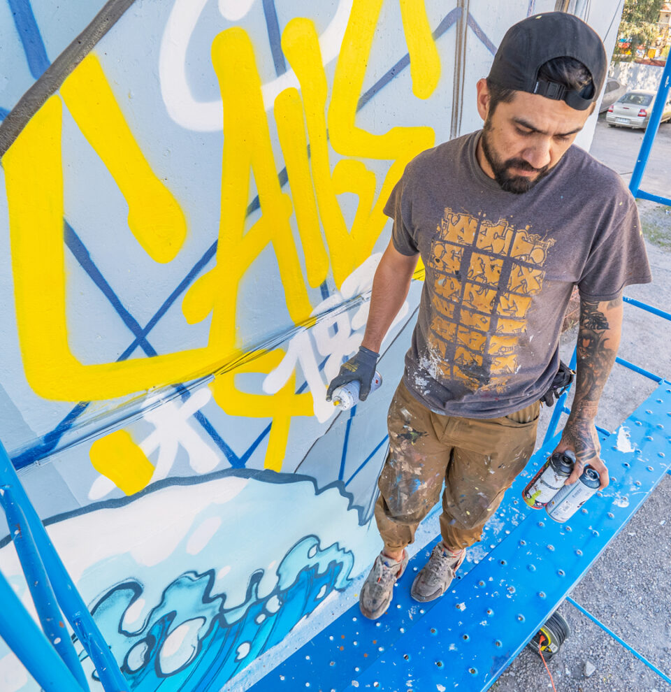 Artista Visual. Es uno de los principales referentes de la escena nacional del graffiti. Su experiencia laboral se ha desplegado en el ámbito social, educacional y cultural-artístico. Sus intervenciones se caracterizan por sus llamativas formas geométricas y colores brillantes.