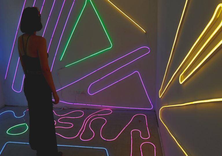De espaldas o con la cara tapada por una gorra, una mascarilla y sus características gafas de luces LED. De él, poco más se conoce, además de que es un artista español que esconde su identidad bajo el pseudónimo de Neón Spidertag.