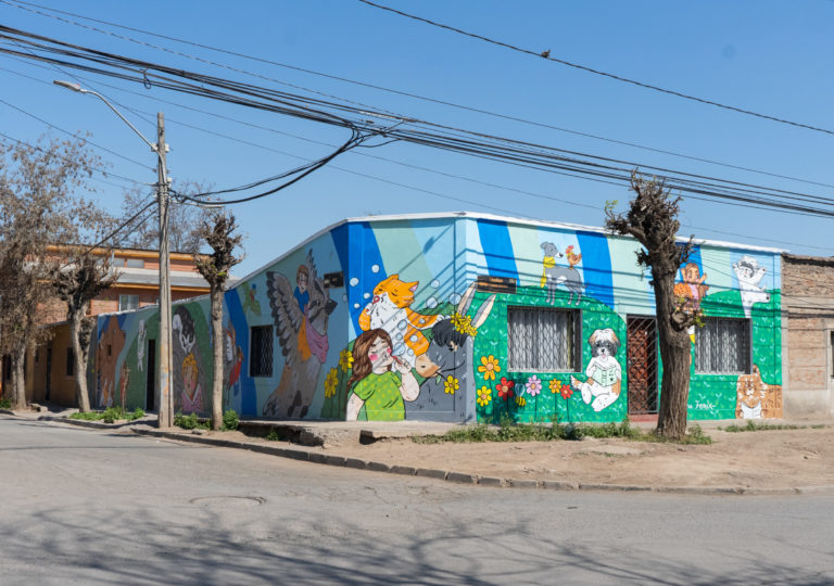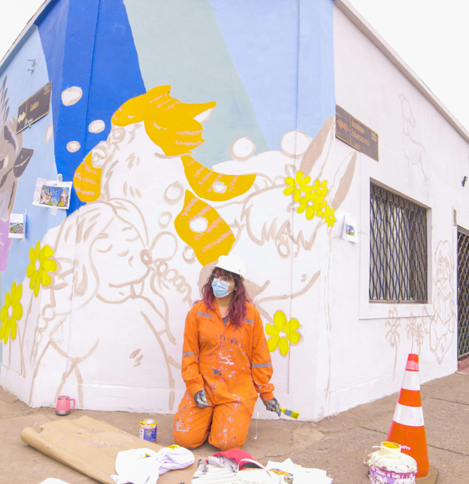 Fue la artista a cargo de retratar a los niños/as y animales del barrio Los Nogales, en el proyecto murales de nogales