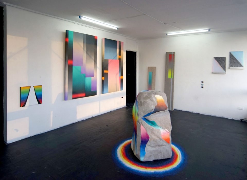 Megahertz es su zona de investigación, un laboratorio donde indagan las propiedades luminosas del prisma hacia múltiples experiencias sensoriales, ampliando las fronteras y posibilidades que ofrecen el muralismo, la ciencia, la percepción de color, la luz, y los axiomas naturales.