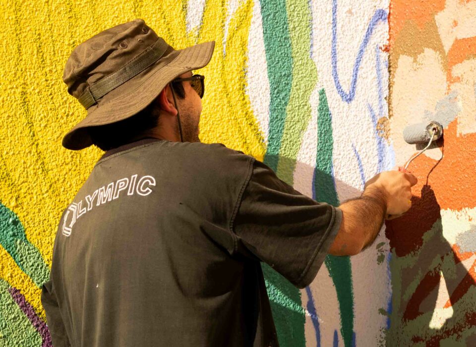 El mural «Reciprocidad» fue realizado por el muralista Perro Seco (@sebagonzalezruiz) y está inspirado en el relato de María Fernanda Díaz, llamado «Verano del 98”.
