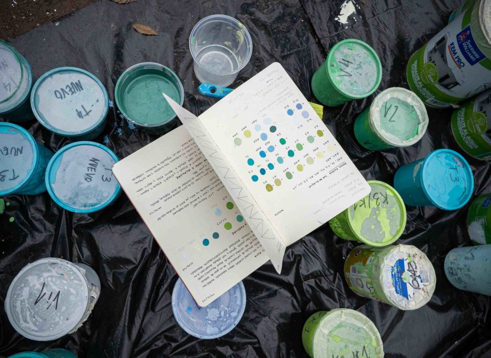 «A nosotras nos tocó un relato que se llama Tierra, que habla de la tierra olvidada, de la frondosidad que antes había, de los colores del río; del verde, del amarillo y eso a nosotras nos fue creando un imaginario de colores, que luego con la arquitectura que tenemos acá, nos permitió hacer un mural que hablara del reflejo de todos esos colores”, señaló María.