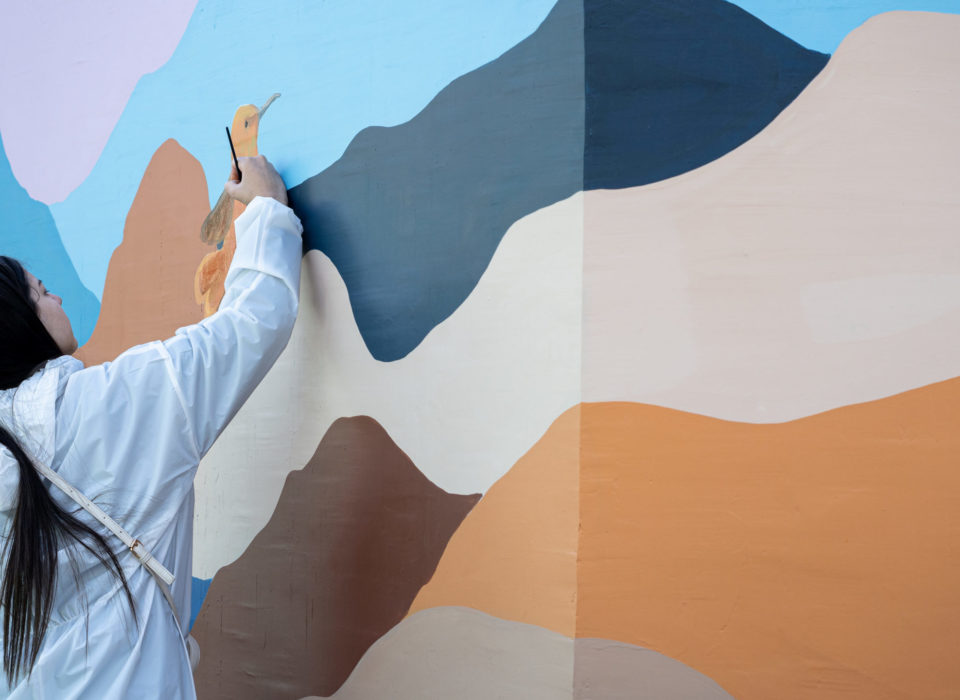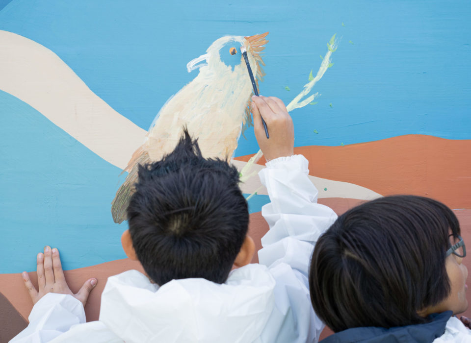 Con un estilo marcado por el manejo de la luz, la artista compone escenas que remiten a la textura del óleo. Previo a la ejecución de este mural se generó una actividad de vinculación con el colegio. En ella se levantaron conceptos por parte de la comunidad escolar como multiculturalidad y naturaleza, que fueron interpretados por la artista y traspasados al diseño final. El proceso de pintado del mural contó con la participación de estudiantes del colegio, quienes también pudieron dejar su huella plasmada en la obra.