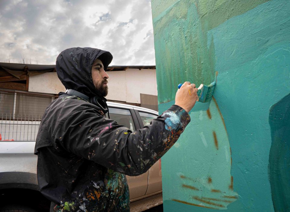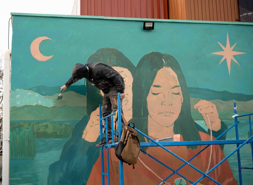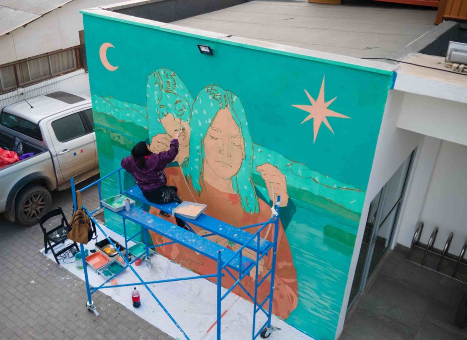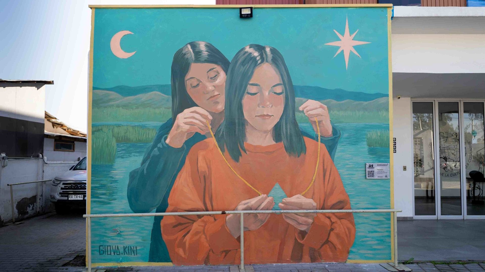 El mural «Herencia» fue realizado por el muralista Giova (@giova.kini) y está inspirada en el relato de Jazmín Bobadilla, llamado “En la calle de Belén”.