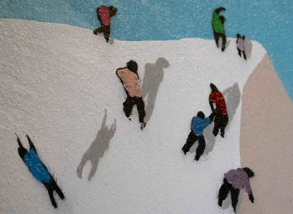 El mural «Aluvión» realizado en la comuna de Macul por Des (@despinta.cl) está inspirado en el relato «Aluvión» de Vera Zepeda.
