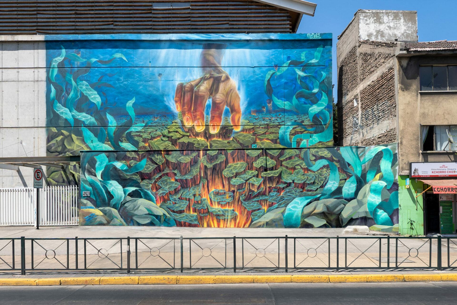 El mural está emplazado en uno de los muros del Liceo José Toribio Medina (A52) tiene por objetivo crear conciencia de la responsabilidad de nuestras acciones en la crisis medioambiental que vive el planeta.