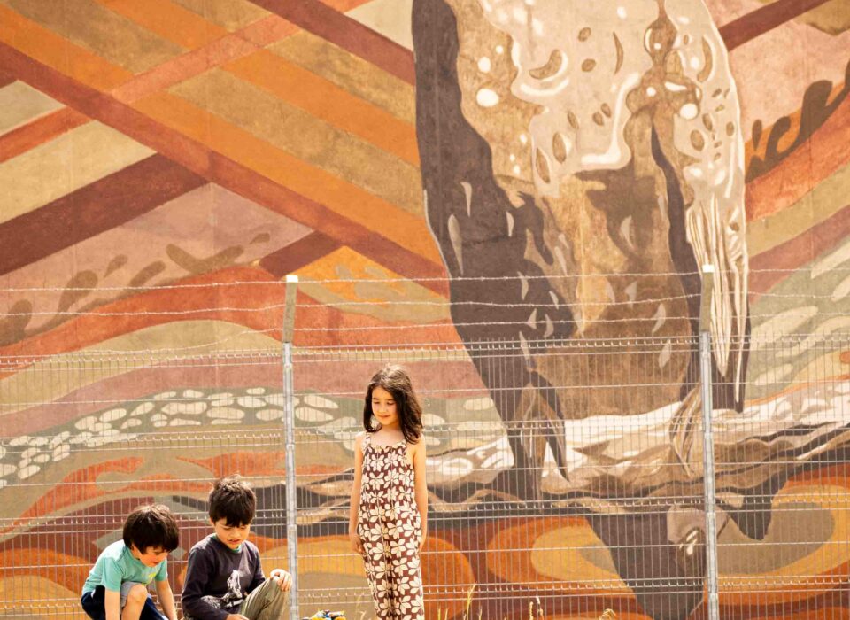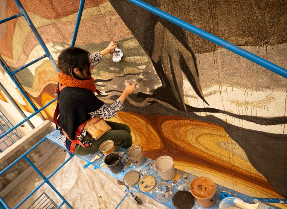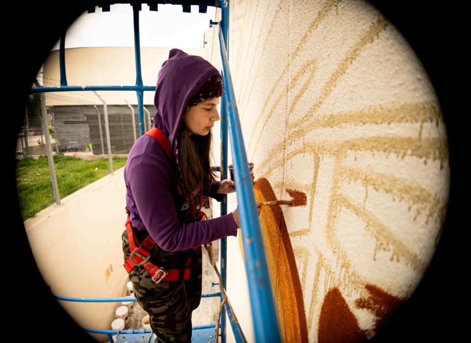 El mural «Aguas subterráneas, vida resiliente» fue realizado por Color Tierra Colectivo (@colortierracolectivo) y está inspirada en el relato de Miguel Ángel Moreno Naranjo, llamado “El agua nuestra dánosla hoy”.