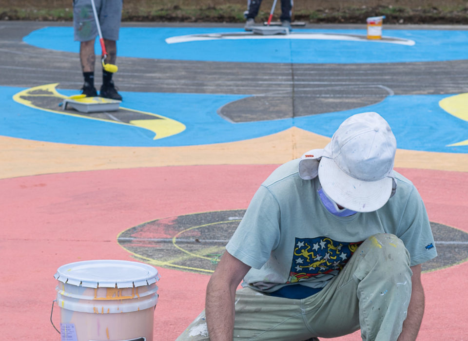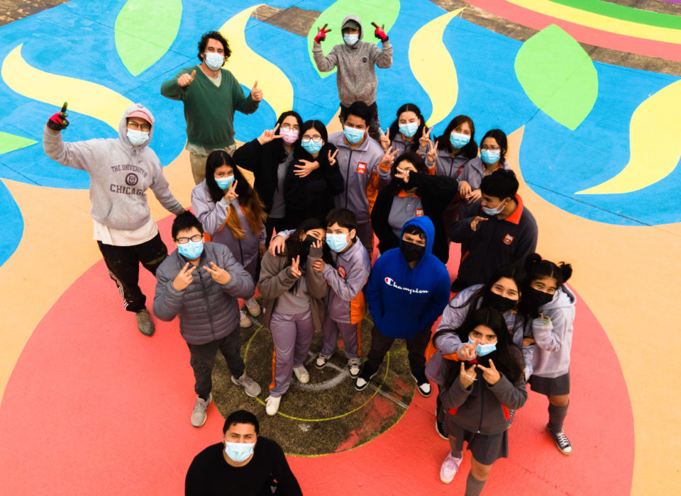 El artista invitado fue Michael Yaikel quien realizó tres propuestas a la escuela inspirado en la información que levantó la comunidad. El diseño de la cancha se vió como una oportunidad para entregarle más color a la Escuela y así poder crear un nuevo espacio de juego.