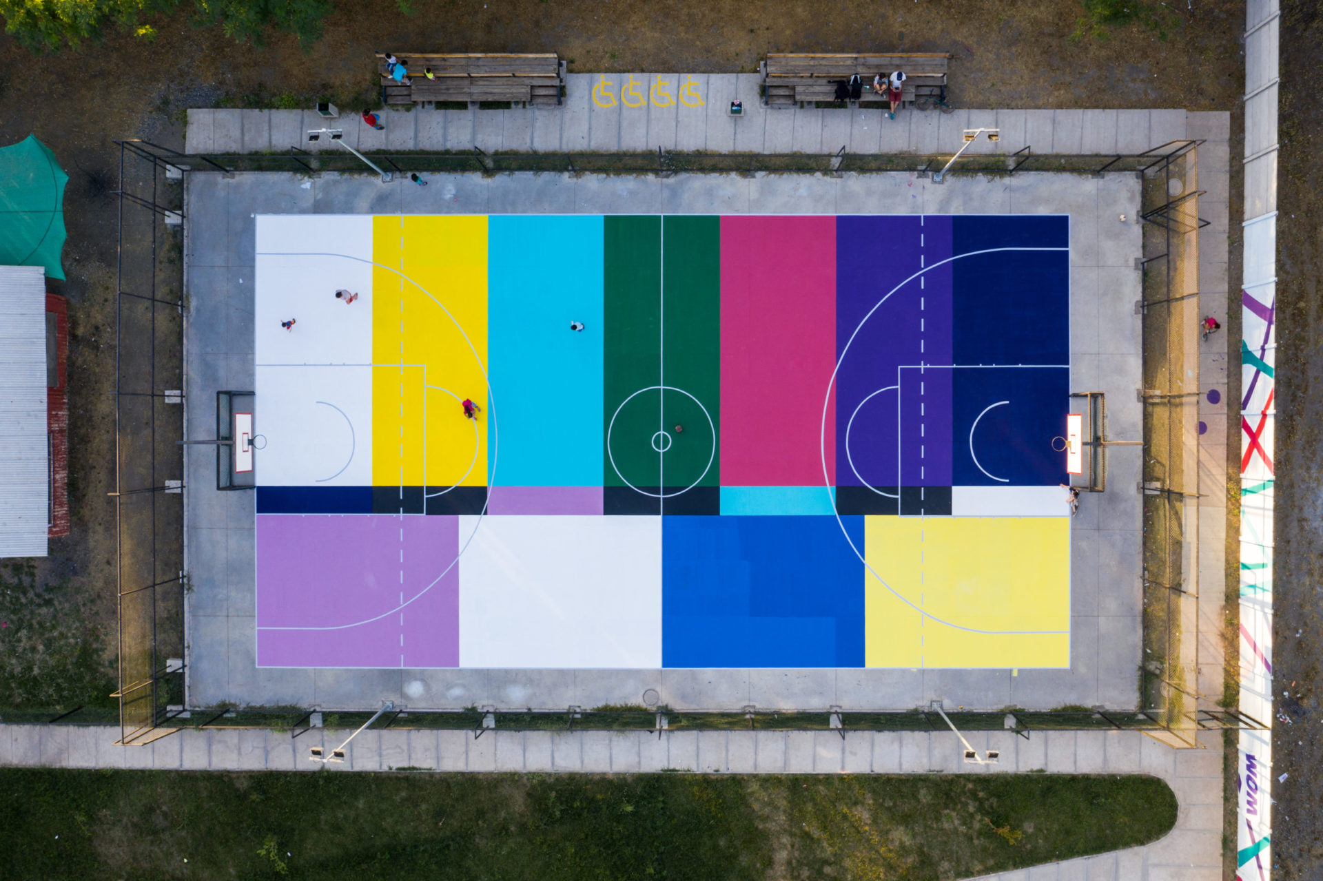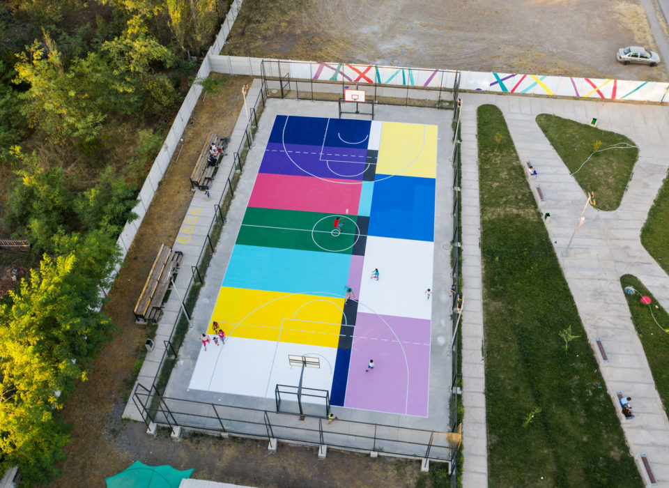 Al momento de inaugurar la cancha la comunidad estaba muy agradecida y feliz. Niños y niñas entraron con skate, patines, monopatines… bailaban y gritaban de la emoción por los colores que veían.