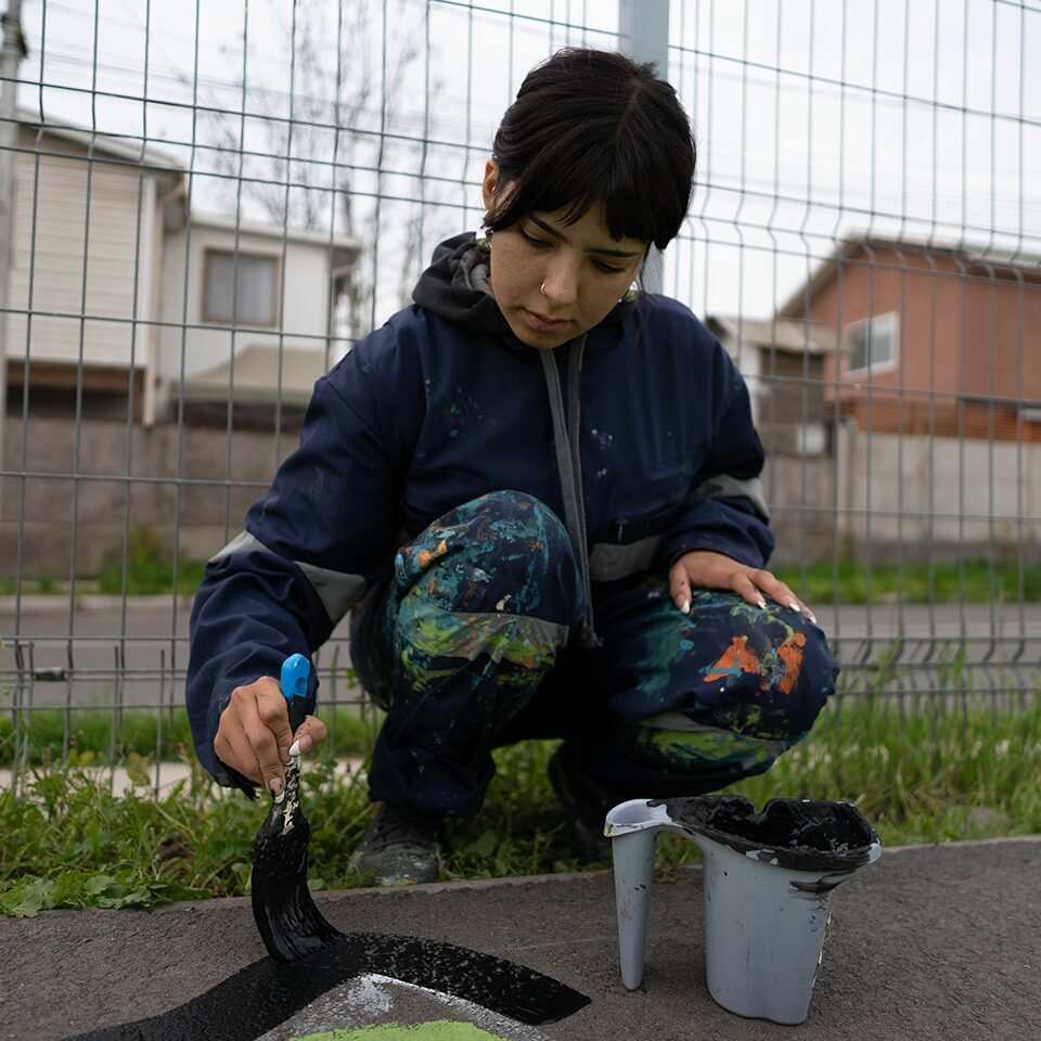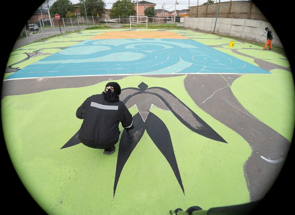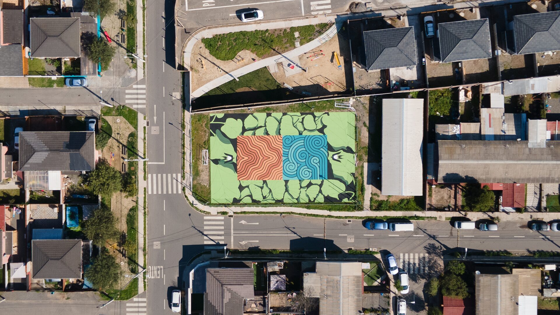 Esta obra, que forma parte de la iniciativa De Cancha en Cancha Gana Santiago, se llama “El viaje de las golondrinas” , y se creó a partir de un proceso participativo, donde vecinos, vecinas y los artistas LNCH y La Eli Eli fueron los encargados de co-diseñar la propuesta. En este proyecto, tanto la comunidad como el artista son actores fundamentales para la reactivación y recuperación de su cancha.
