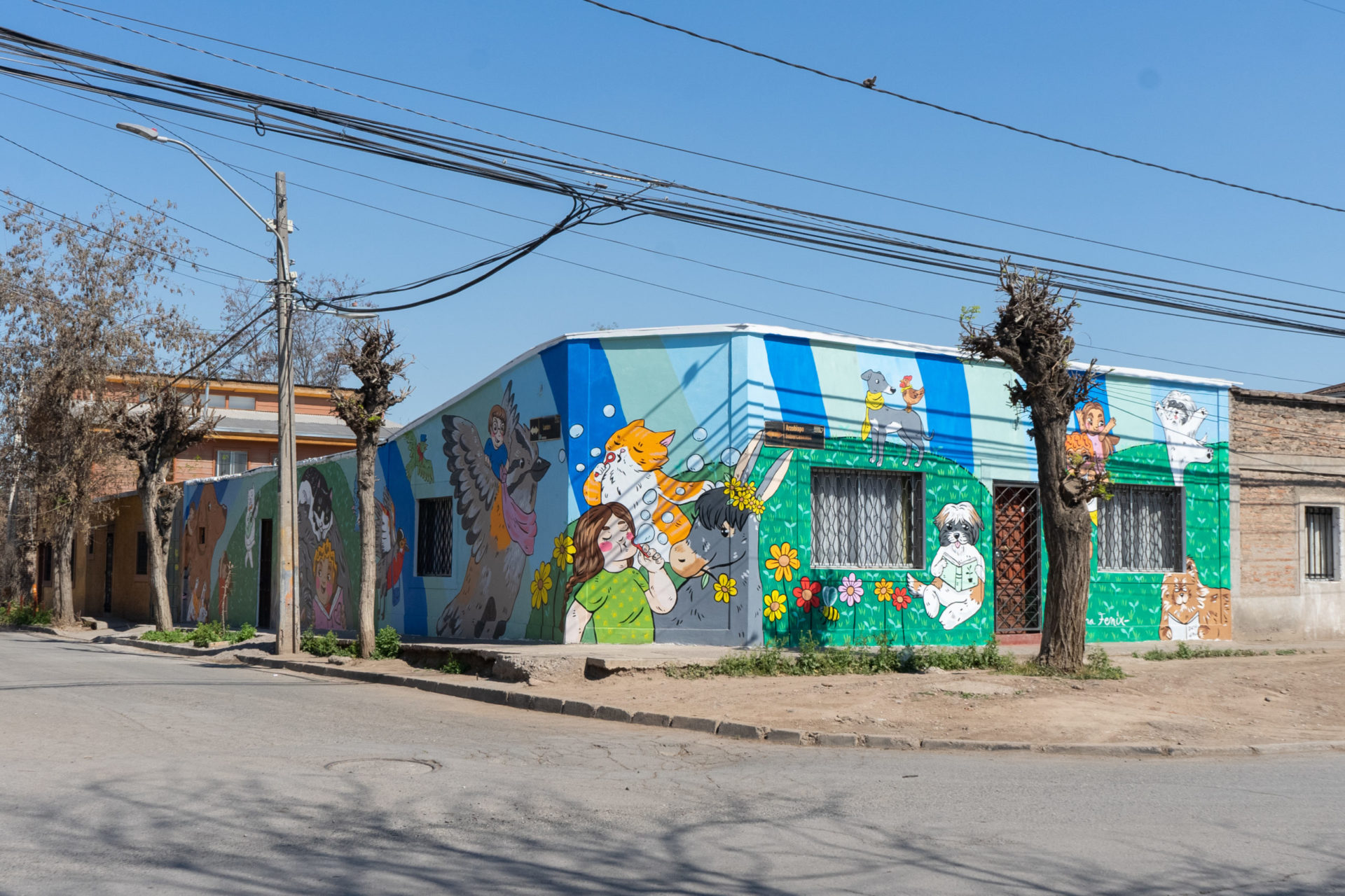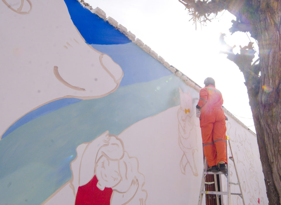 Este mural busca retratar algo sumamente representativo para la comunidad nogalina: los animales y el cariño, seguridad y juego que entregan. La artista seleccionada para la realización de este es Tama Fenix quien es nogalina, Ilustradora y activista por los derechos de los animales, capaz de retratar el espíritu de relación que existe y se busca entre los nogalinos, los más jóvenes y sus animales.