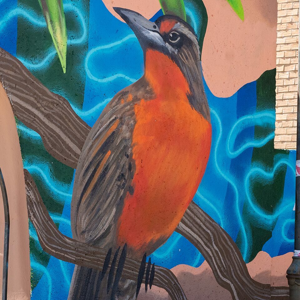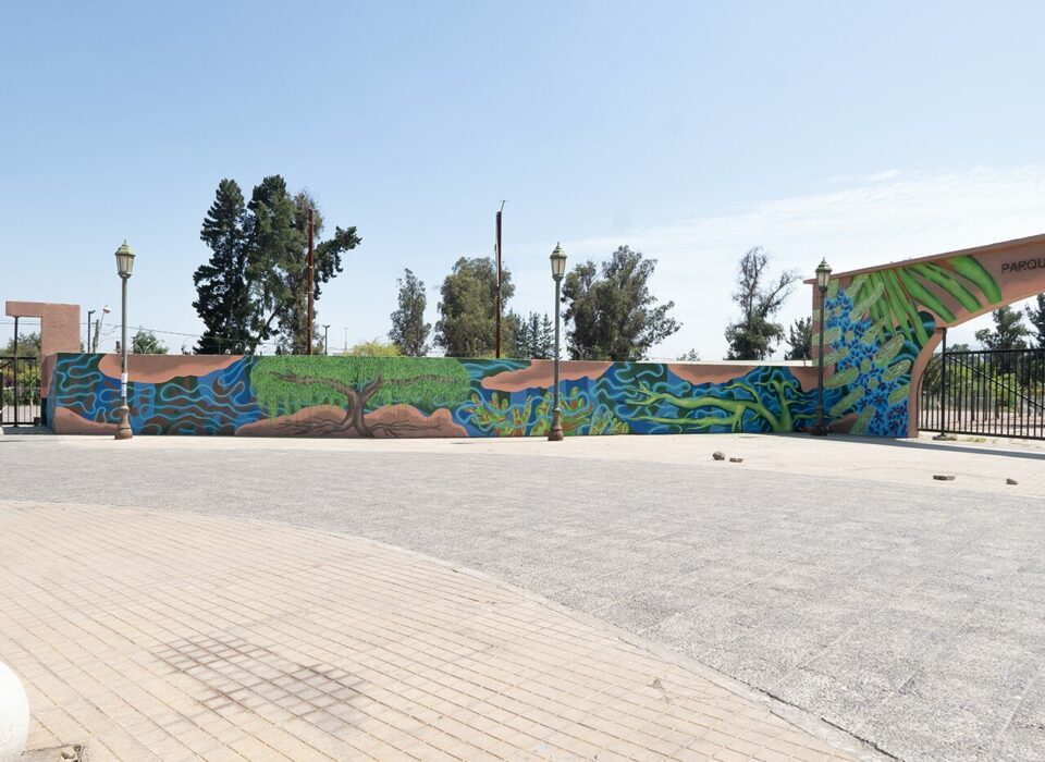 La artista adaptó su obra a la forma que tiene la entrada del Estadio Municipal y el Pueblito de Artesanos, siendo este uno de los murales más largos que se hicieron en el proyecto. Luego de un trabajo de consulta con la comunidad, se acordó incorporar a la obra la figura de la loica, que es un ave representativa de la zona.