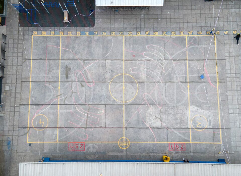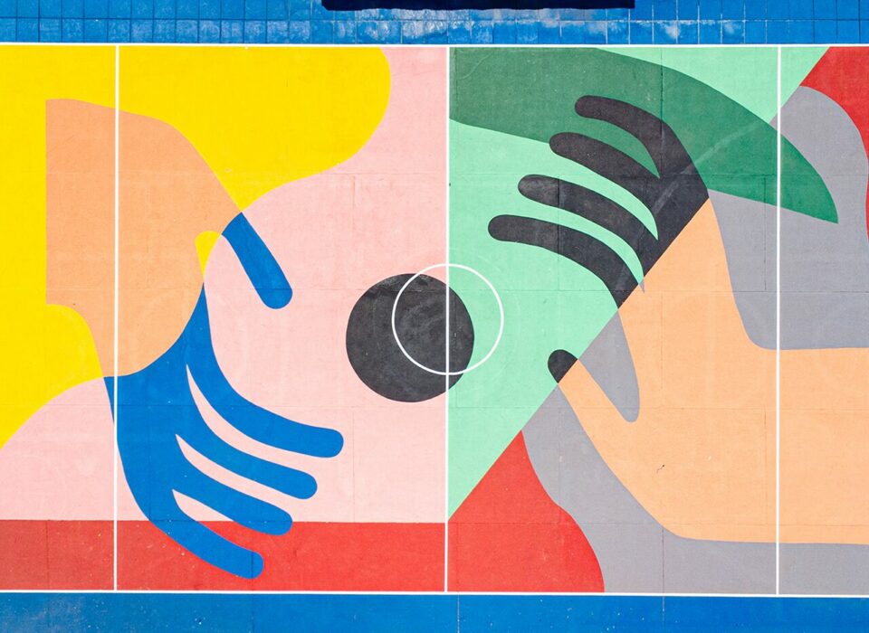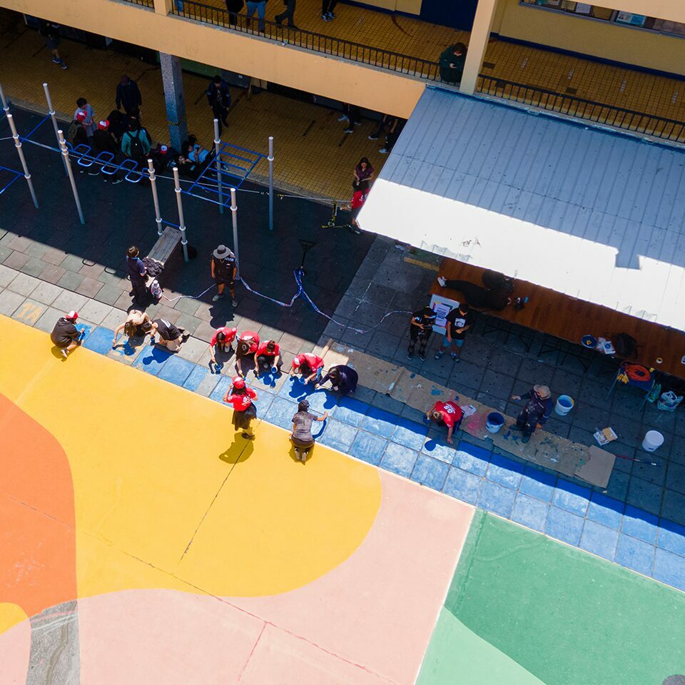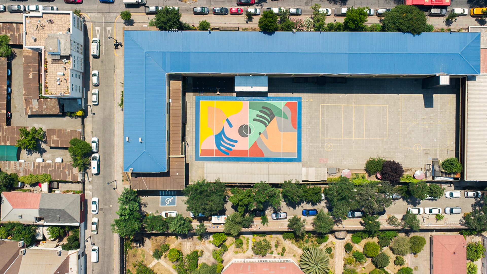 Esta obra se creó a partir de un proceso participativo donde la comunidad escolar y el artista Iker Mur0 codiseñaron esta propuesta. siendo parte del diseño de la cancha. Durante las actividades que se hicieron para construir el proyecto emergieron conceptos como unión, respeto, diversidad cultural y arte, los cuales terminaron siendo plasmados en el suelar.