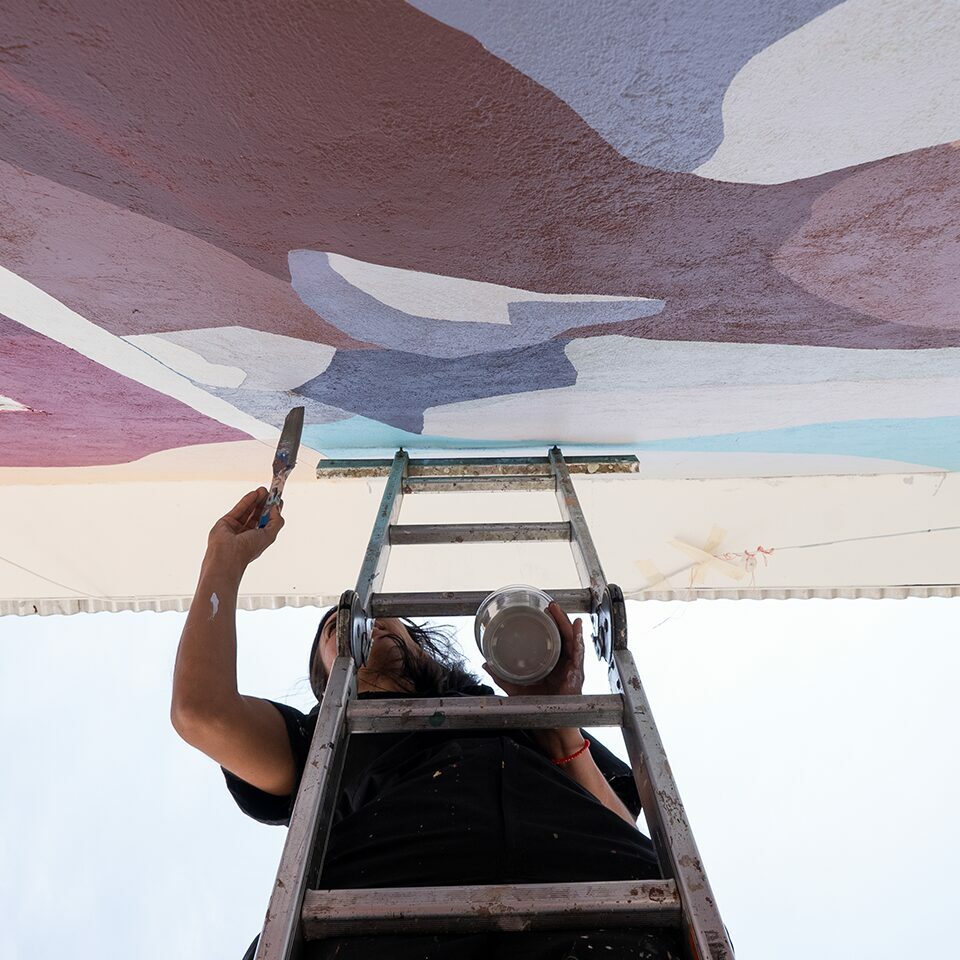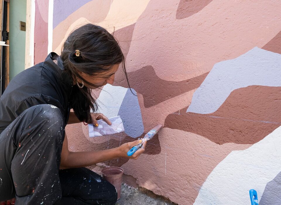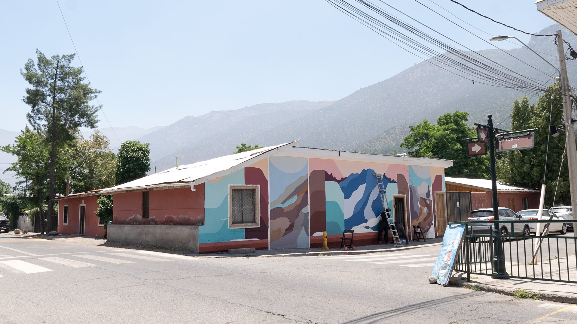 El mural «Naciente» realizado por Constanza Cabrera (@viajegrafico) en la comuna de San José de Maipo está basado en el relato «Memoria» de Alejandra Urtubia.