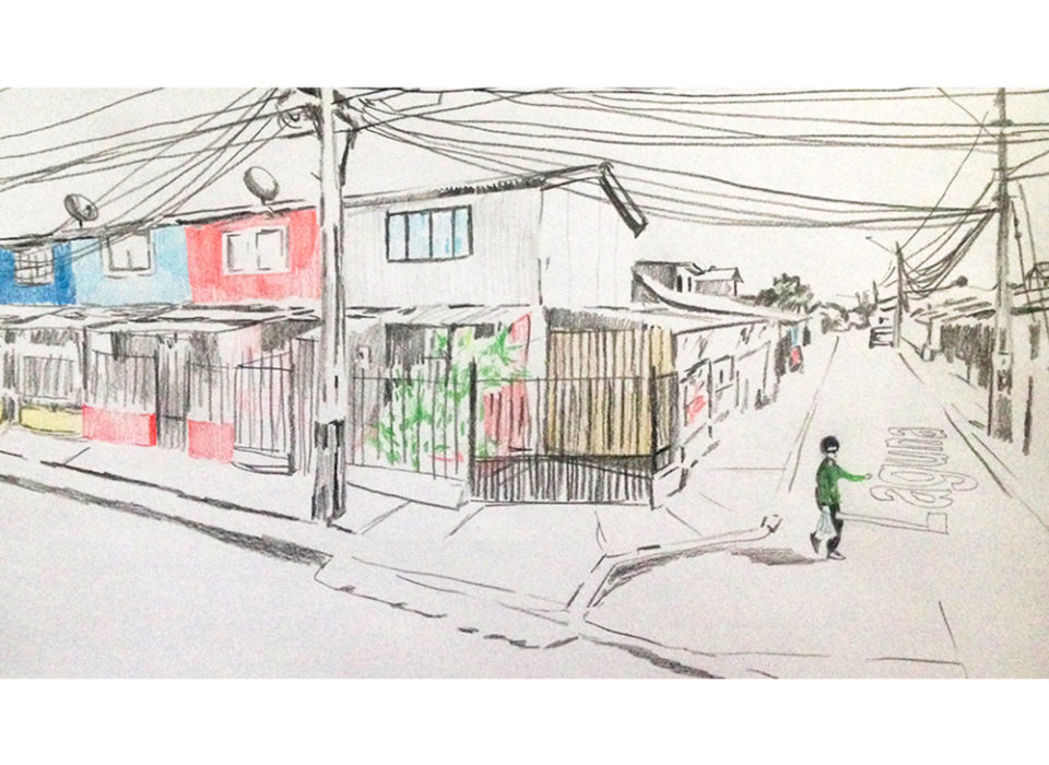 En mi caso todo giró en torno a mi situación biográfica de ese momento. Con mi familia nos mudamos de casa en 2019 a la comuna de Pudahuel y por diversas razones no tuve tiempo de conocer los alrededores del nuevo lugar antes de ir al sur, y cuando volví a Santiago empezó de inmediato la cuarentena. Entonces el encierro con la imposibilidad de salir a recorrer el nuevo lugar donde estaba viviendo me tenían en una situación fuerte de desarraigo. Y mientras el interés por lo acuático que te había nombrado, decantó en una serie de dibujos, pinturas y anotaciones, a la par, la forma que tuve de atender lo que me estaba sucediendo con la pandemia fue hacer unas “caminatas” en Google Maps y Google Street View por los alrededores de mi casa. Y a pesar de que ambas eran plataformas que siempre me habían interesado, el repliegue obligatorio hacia el interior y el anhelo de exterioridad fue lo que dio sentido a mi trabajo en 2020, y que solo fue posible por las condiciones que estábamos viviendo.