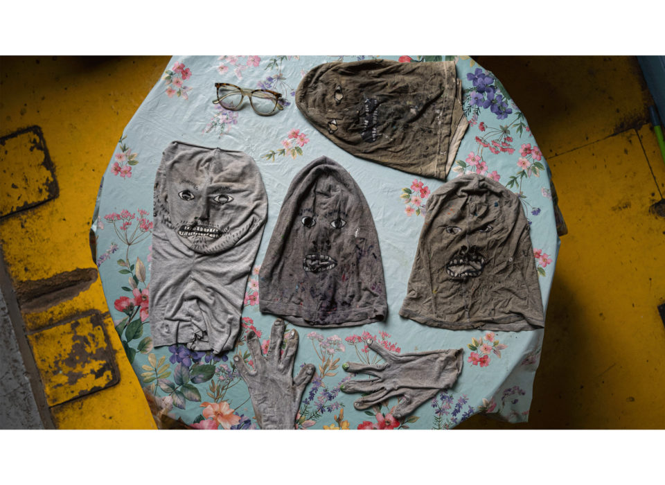 Igual, mi inquietud siempre ha sido amplia, porque no solo pinto, he expandido mi práctica hacia otros lenguajes como la performance y el video, cuando chico era lo mismo, fabriqué esculturas de basura de rostros gritando hechas de base de cartón con papel de papa fritas moldeado con el fuego de un encendedor, tallaba pequeñas figuritas en velas con corta cartón y agujas para los detalles más finos, intervine el techo de mi pieza con cientos de cajas de cigarro, tenía a todxs lxs amigxs juntándome cajas de Belmont 10, la idea era que desde la lámpara circular de la habitación salieran círculos de caja hacia afuera, quería generar una especie de sol en el techo de mi pieza, me inventaba cosas con lo que tuviera a mano, aún lo sigo haciendo.