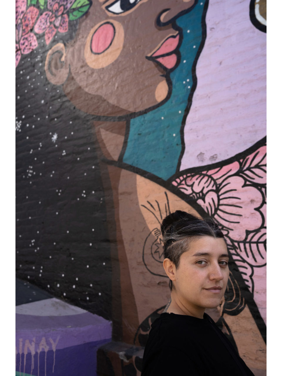 Estudié fotografía y diseño de vestuario y, sin duda, esos estudios me enseñaron un montón de cosas que aplico en la pintura, pero también la máxima evolución de mi trabajo de pintura la desarrollé en la calle. Aprecio mucho la escuela de la calle, esa posibilidad de aprender haciendo. Además, el soporte da la posibilidad para todes quienes se animen. Si bien tiene mucho esfuerzo detrás, dado que no siempre tiene retribución económica, trae mucha alegría y satisfacción. Es bien intenso y sacrificado, trabajas expuesto a los riesgos de la calle, el sol, el frío, múltiples factores, pero siempre vale la pena. En mi última exposición individual, noté una gran evolución de técnica y madurez al mostrar mi trabajo en un espacio cultural tan importante como el GAM. Me sorprende y emociona. La evolución no tiene límites. Se debe soñar y trabajar por esos sueños para ver resultados, siempre poniéndole corazón a lo que se hace.