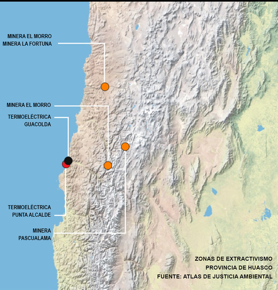 Aledaña a Freirina donde Agrosuper instaló la mayor planta porcina de latinoamérica, emanando malos olores, prohibiendo a sus habitantes tener una vida digna (Sustentable, 2020). Y entre el proyecto Dominga que pone en riesgo la enorme biodiversidad marina de la corriente de Humboldt, la cual alberga el ecosistema marino más numeroso del planeta (BBC, 2019).