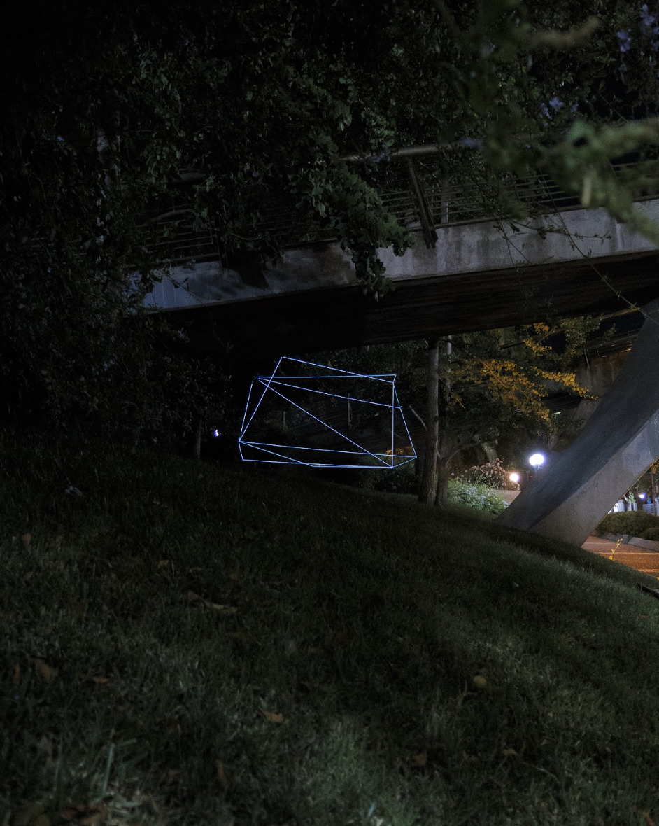 Por la naturaleza pública de su trabajo, la exposición Neonmetry se desarrolla tanto en las salas de exhibición de la galería como en el espacio público, con intervenciones abstractas evanescentes que transforman los espacios que se apropia, imágenes poderosas que lo tienen hoy a la vanguardia del arte urbano a nivel global.